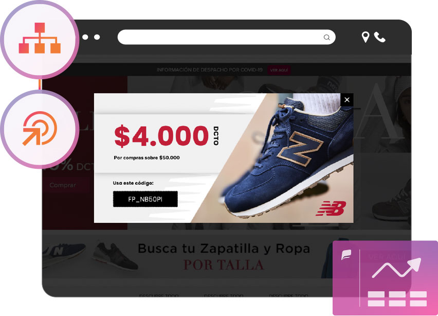 New Balance needed to improve performance on the website through creating users' personalized journeys.Franplayr campaign leverages on-site targeting using discount codes to incentivize the finalization of orders through strategies of purchase intention and retention. The main goal of the campaign was to boost the conversion rate, but the AOV has been positively affected by Fanplayr activities as well.