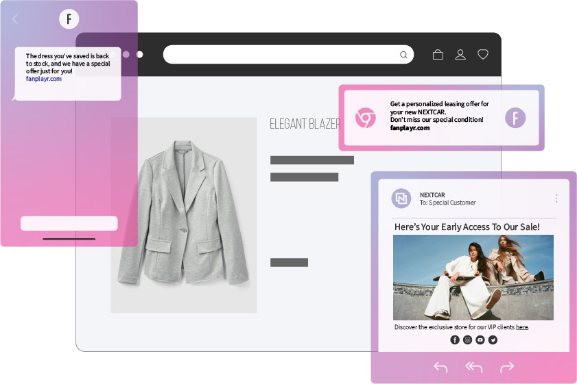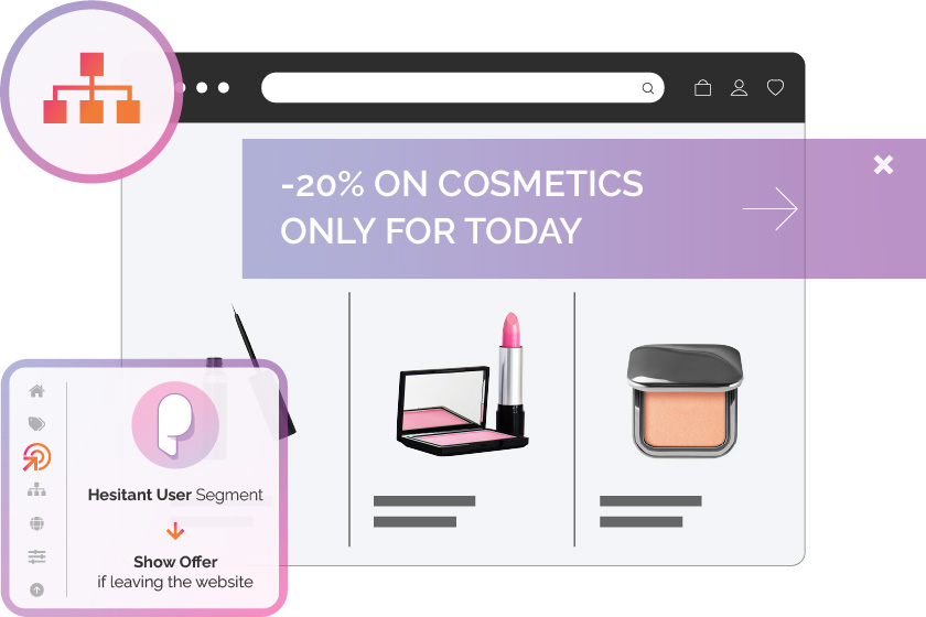 Stage the perfect user journey leveraging real-time data and personalization for a seamless omnichannel experience. Create a dialogue that feels unique to each customer: understand their preferences to keep them engaged with your site and catch their attention with interesting promotions that call for an action to reduce bounce and abandonment rate, while also increasing the chance of conversion.