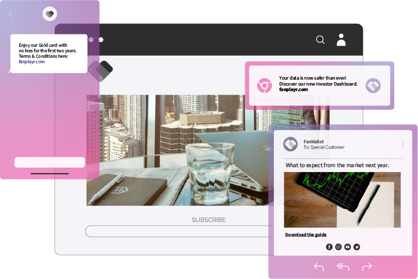 Offer a personalized financial journey that connects each touchpoint seamlessly, building trust and loyalty between your brand and your clients. Display personalized products, offers and informative content to increase engagement and push additional services. that are relevant to each individual customer's needs.