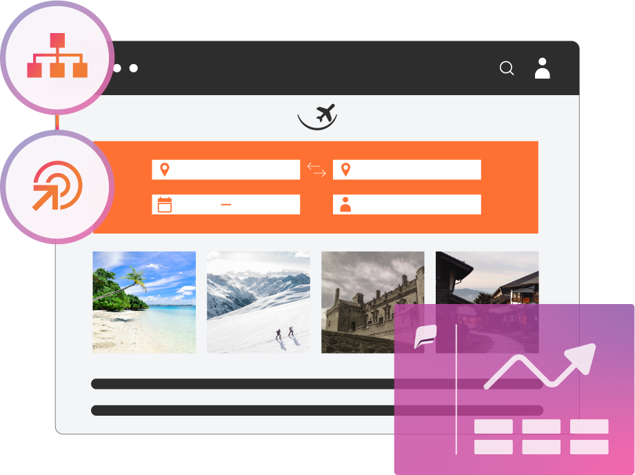 Satisfy and serve travelers' demands with a personalized travel experience that anticipates their needs. Offer AI based travel recommendations and encourage users to book a trip leveraging remarketing strategies such as personalized emails, web push notifications or SMS to keep the conversation going. Take action on behavioral data collected during past visits or previous bookings to build loyalty on-site and offsite, and create long-lasting relationships.